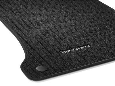 Tapis en feutre aiguilleté extrêmement résistants et d’une grande longévité, rehaussés du monogramme Mercedes-Benz brodé. Disponibles en noir.